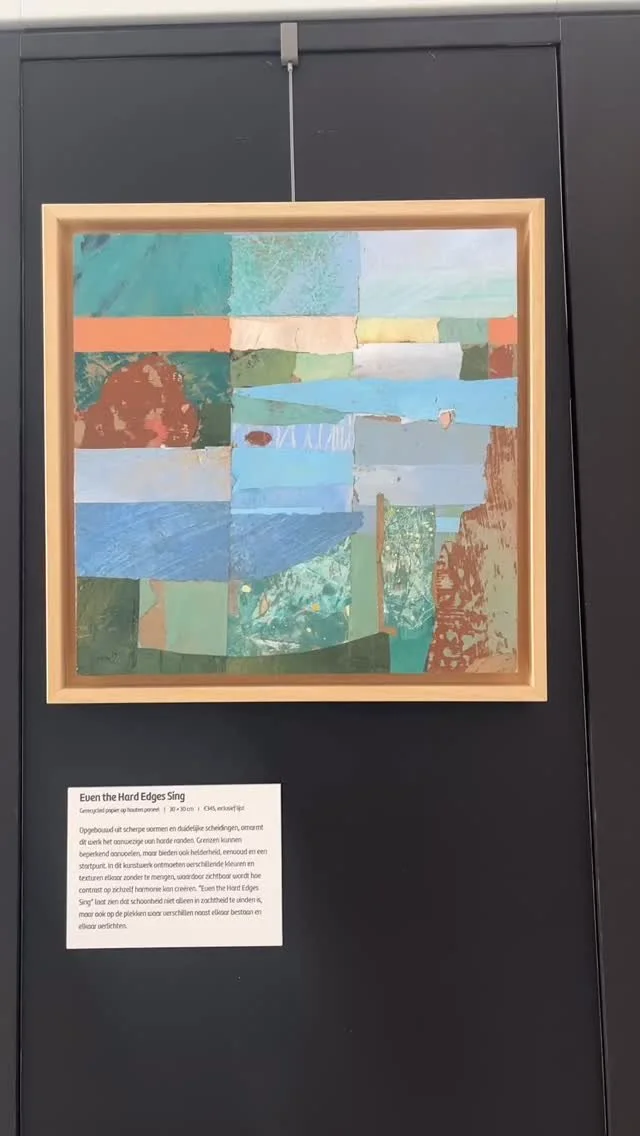 Usually, I start with a colour palette and sometimes a loose sense of a landscape or seascape. I work intuitively, selecting and rearranging larger paper shapes to form an initial composition. From there, I develop the work through smaller pieces of paper and acrylic paint, deepening colour, texture, and spatial depth - often allowing the artwork to change significantly from its original form.